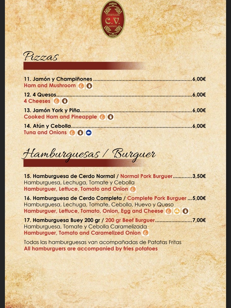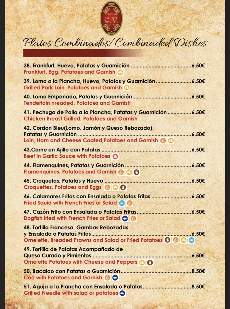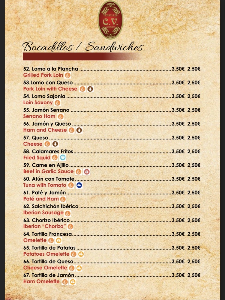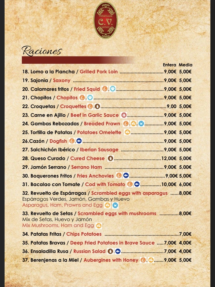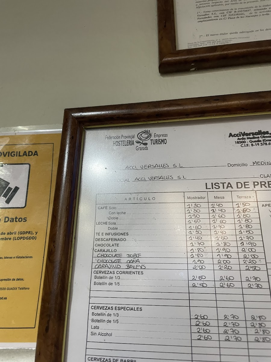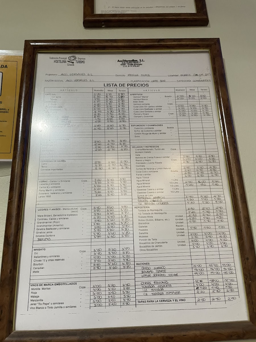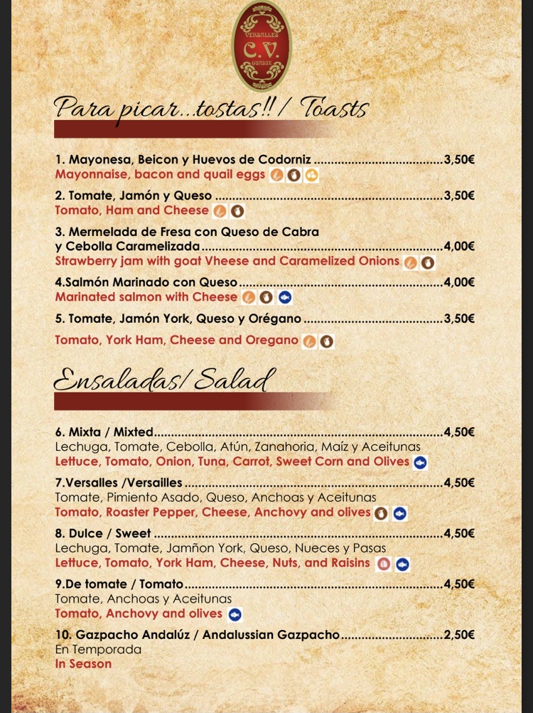 Cafeteria Versalles - Granada Menu